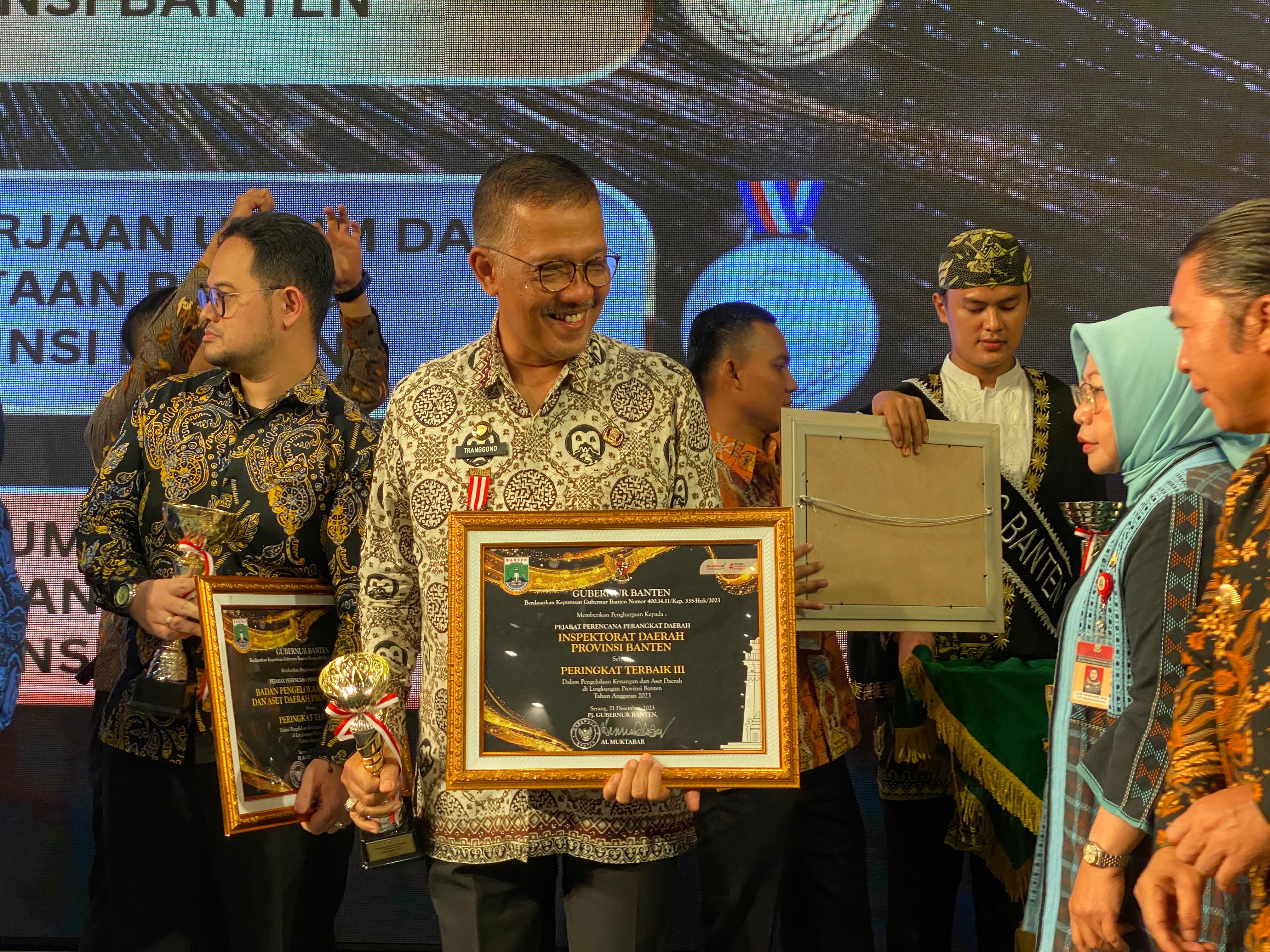 Inspektorat Daerah Provinsi Banten Mendapatkan Penghargaan Terbaik ke-3 Dari Gubernur Banten sebagai OPD dengan Pengelolaan Keuangan dan Aset Daerah Tahun Anggaran 2023.