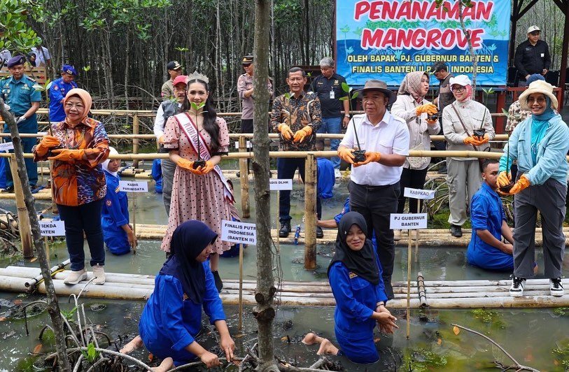 Plt. Inspektur Daerah Provinsi Banten mendampingi Bapak Penjabat Gubernur Banten Al Muktabar Bersama Finalis Puteri Indonesia Tahun 2024 Perwakilan Wilayah Banten II, Melakukan Kegiatan Penanaman Mangrove, Menyapa Anak anak Paud serta Kegiatan Posyandu dilanjutkan Berdialog Dengan Para Nelayan, di Karangantu, Kota Serang
