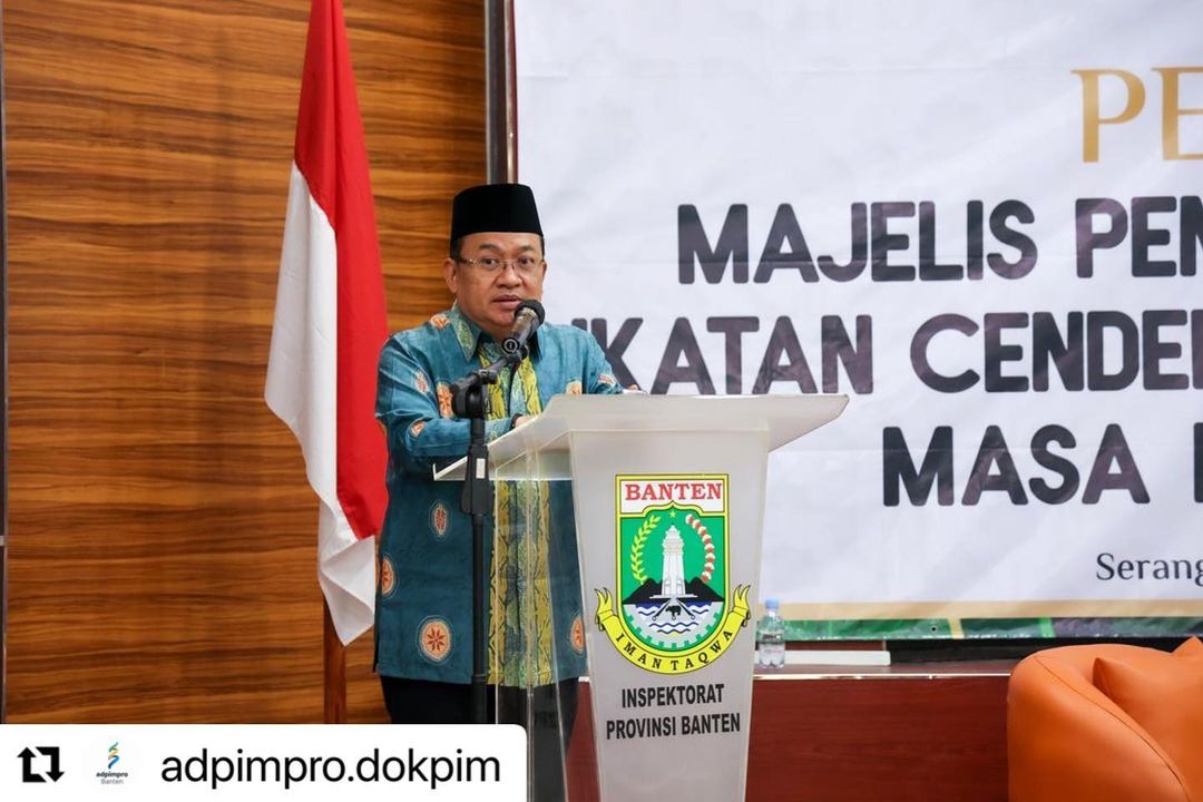 Penjabat (Pj) Gubernur Banten Al Muktabar menghadiri Pelantikan Majelis Pengurus Wilayah (MPW) Ikatan Cendekiawan Muslim Indonesia (ICMI) Banten Masa Bakti 2024 - 2029 di Aula Inspektorat Provinsi Banten, KP3B Curug, Kota Serang, Rabu (6/3/2024). Ketua MPW ICMI Banten Eden Gunawan beserta jajaran dilantik oleh Wakil Ketua Umum ICMI Priyo Budi Santoso.