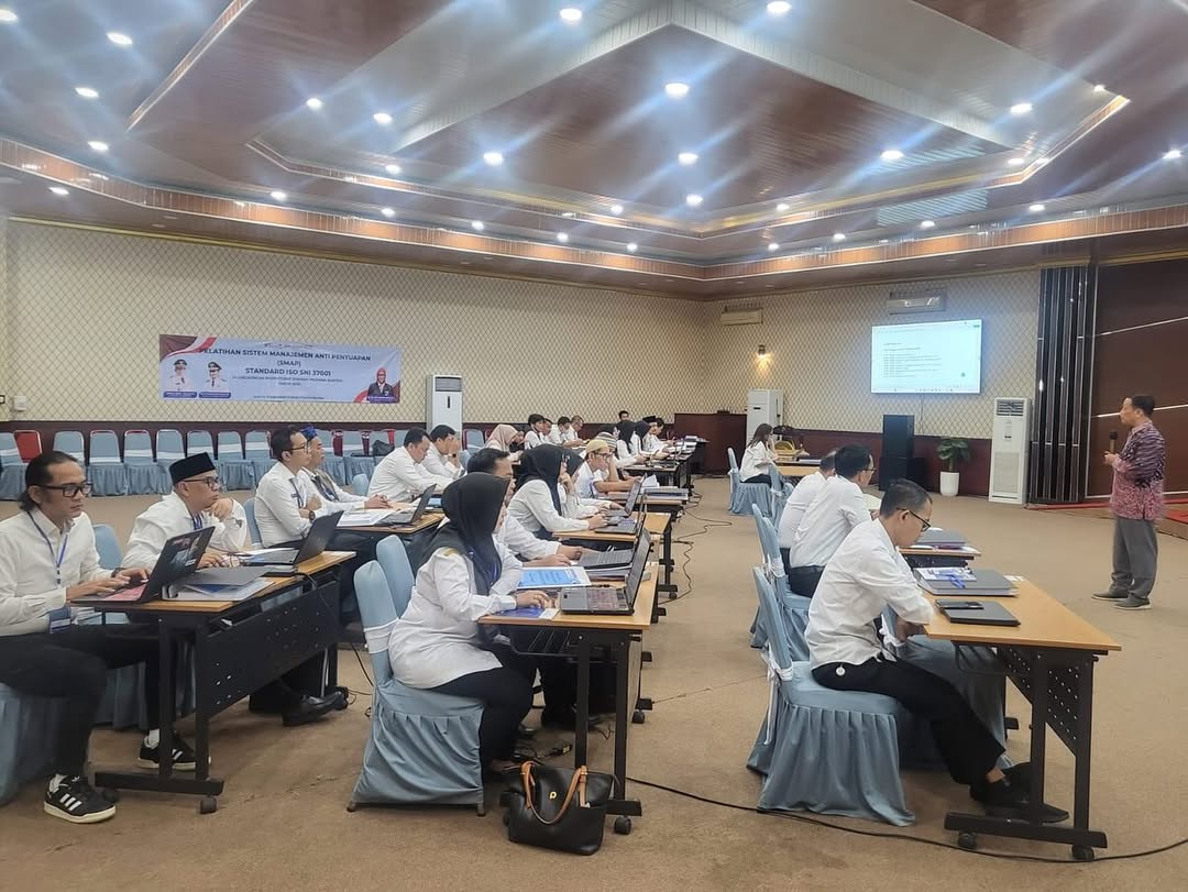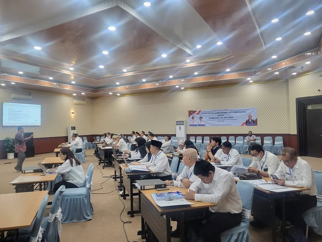 Pembukaan Pelatihan Tahap 3 Sistem Manajemen Anti Penyuapan (SMAP) ISO : SNI 37001 Audit Internal di Lingkungan Inspektorat Daerah Provinsi Banten. Kamis, 20 Maret 2025.