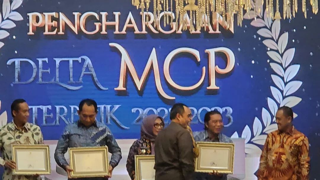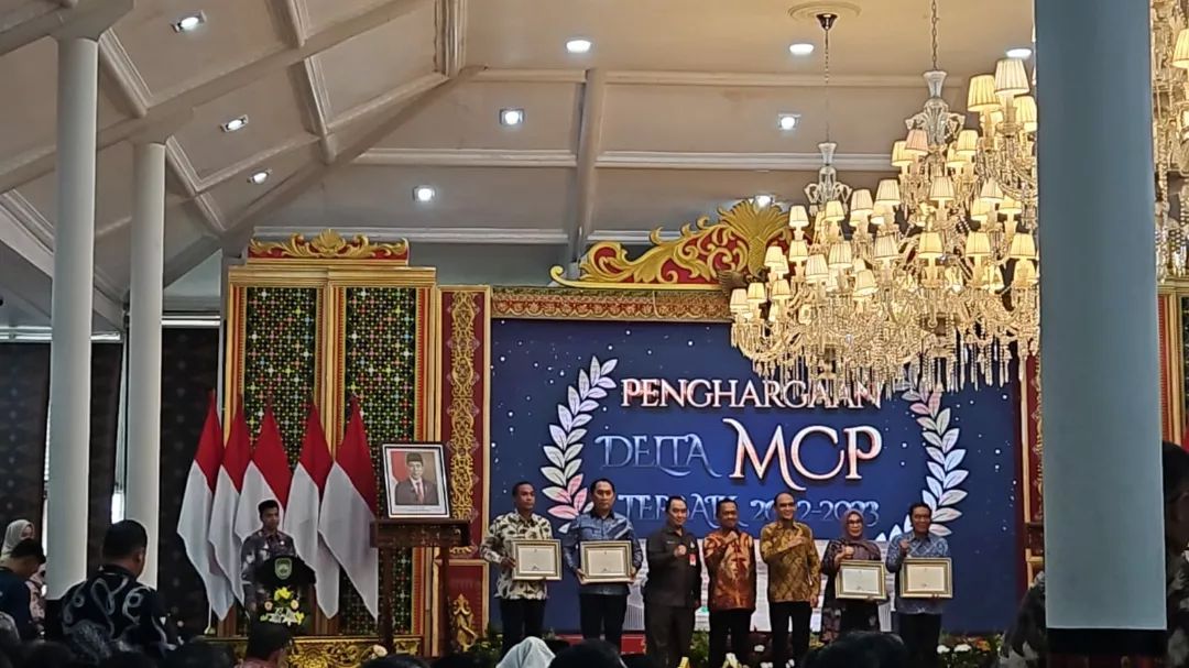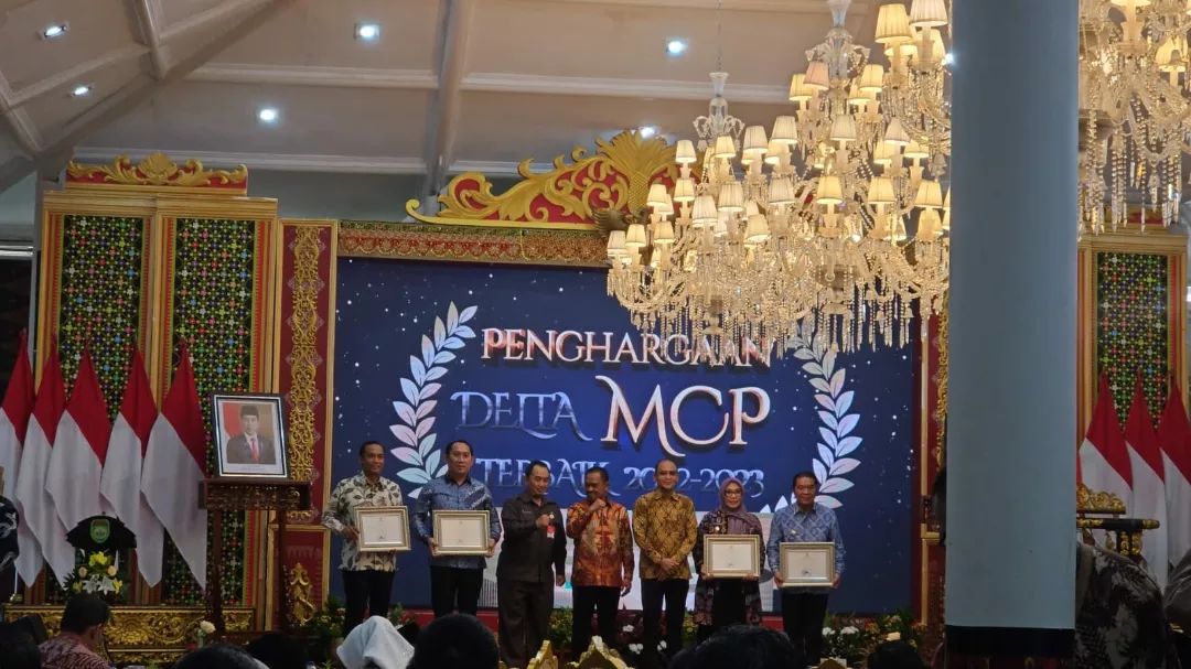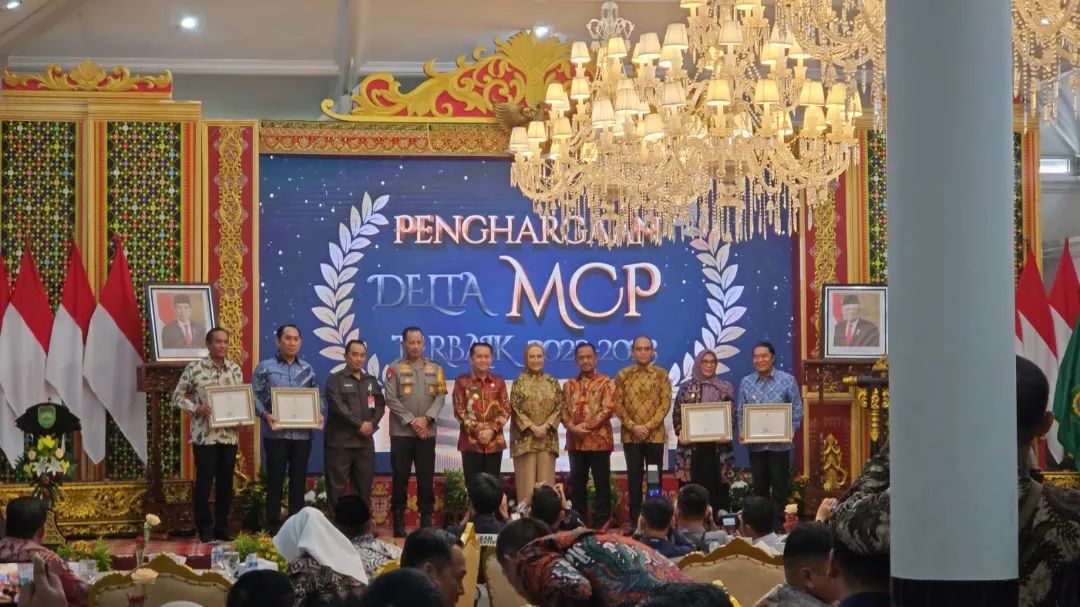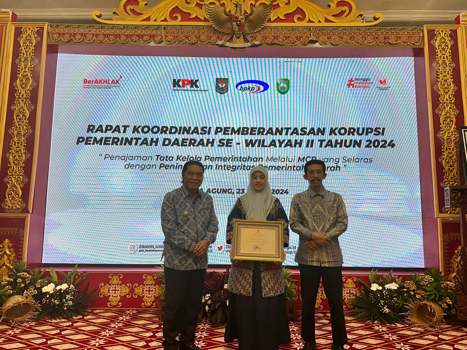 Pj. Gubernur Banten memberikan sambutan dan menerima penghargaan dari Komisi Pemberantasan Korupsi yang diberikan kepada Pemerintah Provinsi Banten sebagai Pemda dengan Sertifikasi Tanah Barang Milik Daerah Terluas Tahun 2023 pada Kegiatan Rapat Koordinasi Pemberantasan Korupsi Pemerintah Daerah se Wilayah II Tahun 2024 dengan Tema Penajaman Tata Kelola Pemerintah melalui MCP yang Selaras dengan Peningkatan Integritas Pemerintah Daerah, Griya Agung, 23 April 2024 Palembang.