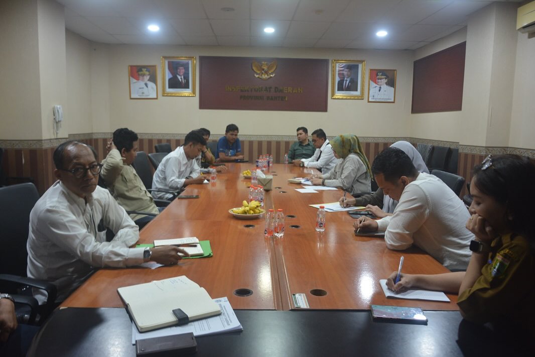 Plt. Inspektur Daerah Provinsi Banten didampingi Sekretaris Inspektorat Daerah Provinsi Banten, para Inspektur Pembantu, serta jajaran, menerima audiensi dari Ikatan Mahasiswa Banten Antikorupsi (IMBAK)