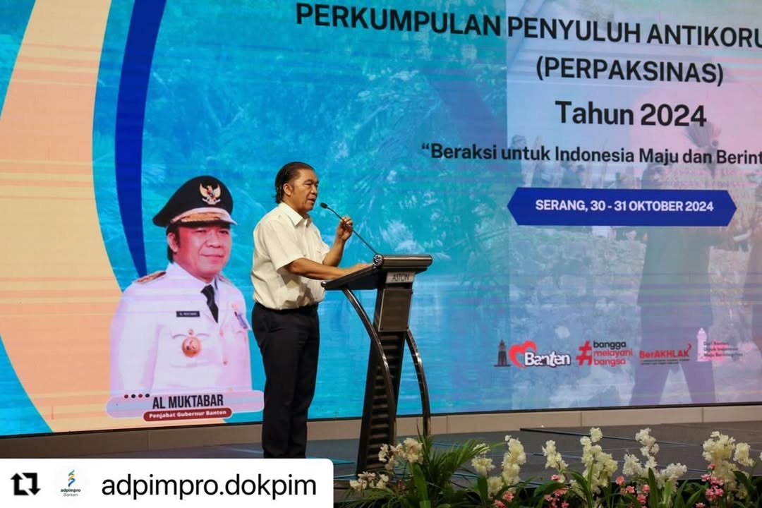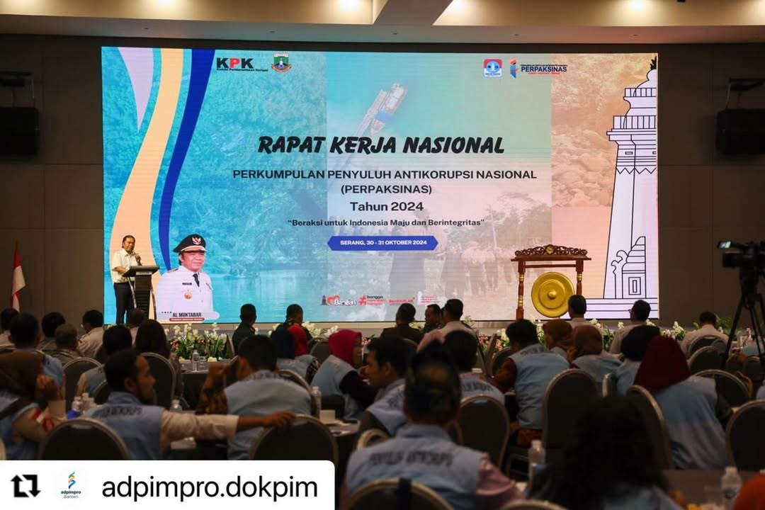 Repost From @Adpimpro.Dokpim Penjabat (Pj) Gubernur Banten Al Muktabar berharap dengan dilaksanakannya Rapat Kerja Nasional (Rakernas) Perkumpulan Penyuluh Antikorupsi Nasional (Perpaksinas) di Provinsi Banten dapat menjadi penguatan kelembagaan dan merumuskan langkah kerja yang memberikan kontribusi dalam percepatan pembangunan, baik di daerah maupun di tingkat nasional.