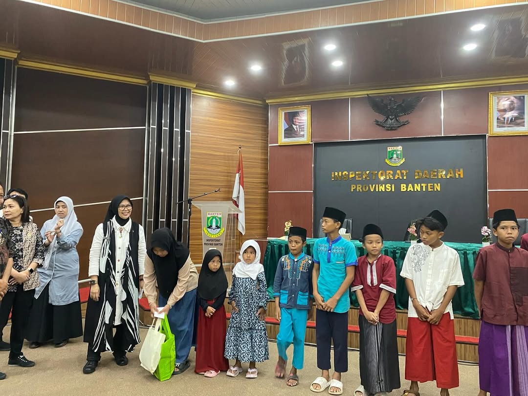 Inspektorat Daerah Provinsi Banten menggelar Santunan Yatim Piatu yang bertujuan untuk mempererat Ukhuwah dan Silahturahmi antar karyawan di Lingkungan Inspektorat Daerah Provinsi Banten. Selain itu di Bulan Ramadhan ini marilah kita bersyukur karena pada saat ini kita masih diberi kemampuan untuk berbagi dengan mereka yang sangat disayangi oleh Allah SWT yaitu anak anak yatim. Semoga segala niat baik kita di diridhai oleh Allah SWT. Aamiin