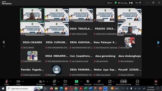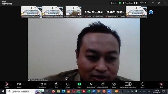 Sosialisasi secara virtual (zoom meeting) terkait Percontohan Desa Anti Korupsi Tahun 2024 di Provinsi Banten
