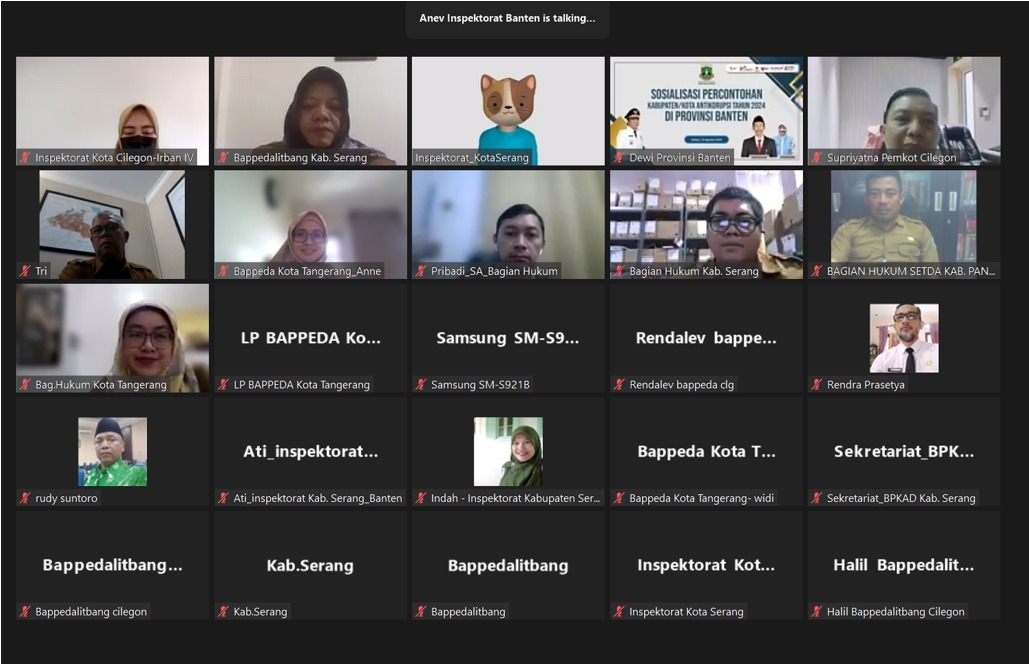Sosialisasi secara virtual (zoom meeting) terkait Percontohan Kabupaten/Kota Anti Korupsi Tahun 2024 di Provinsi Banten