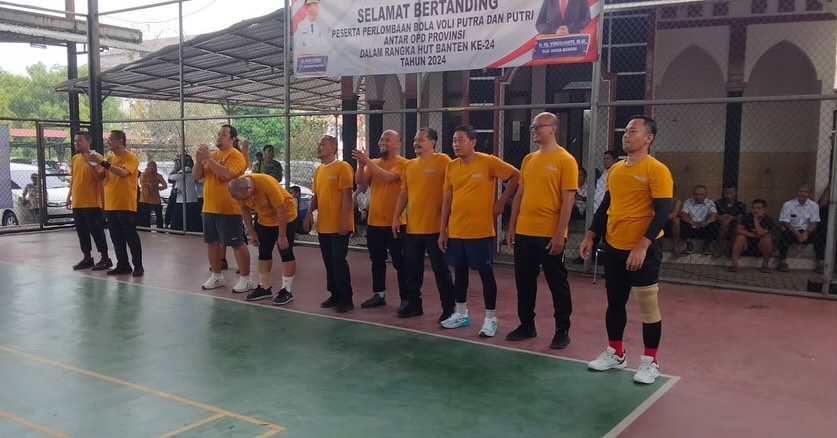 Memeriahkan rangkaian HUT Provinsi Banten ke 24, tim voli Putra Inspektorat Daerah berpartisipasi dalam Perlombaan Bola Voli Antar OPD di lingkungan Pemprov Banten
