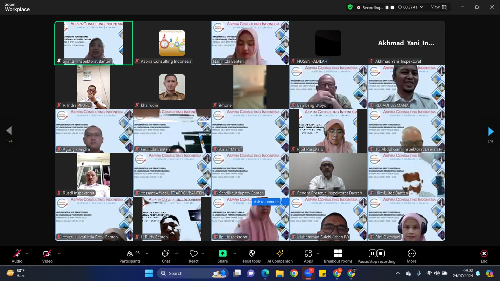 Webinar Aspira Consulting Indonesia "Implementasi SPIP Terintegrasi di Lingkungan Pemerintah Daerah"