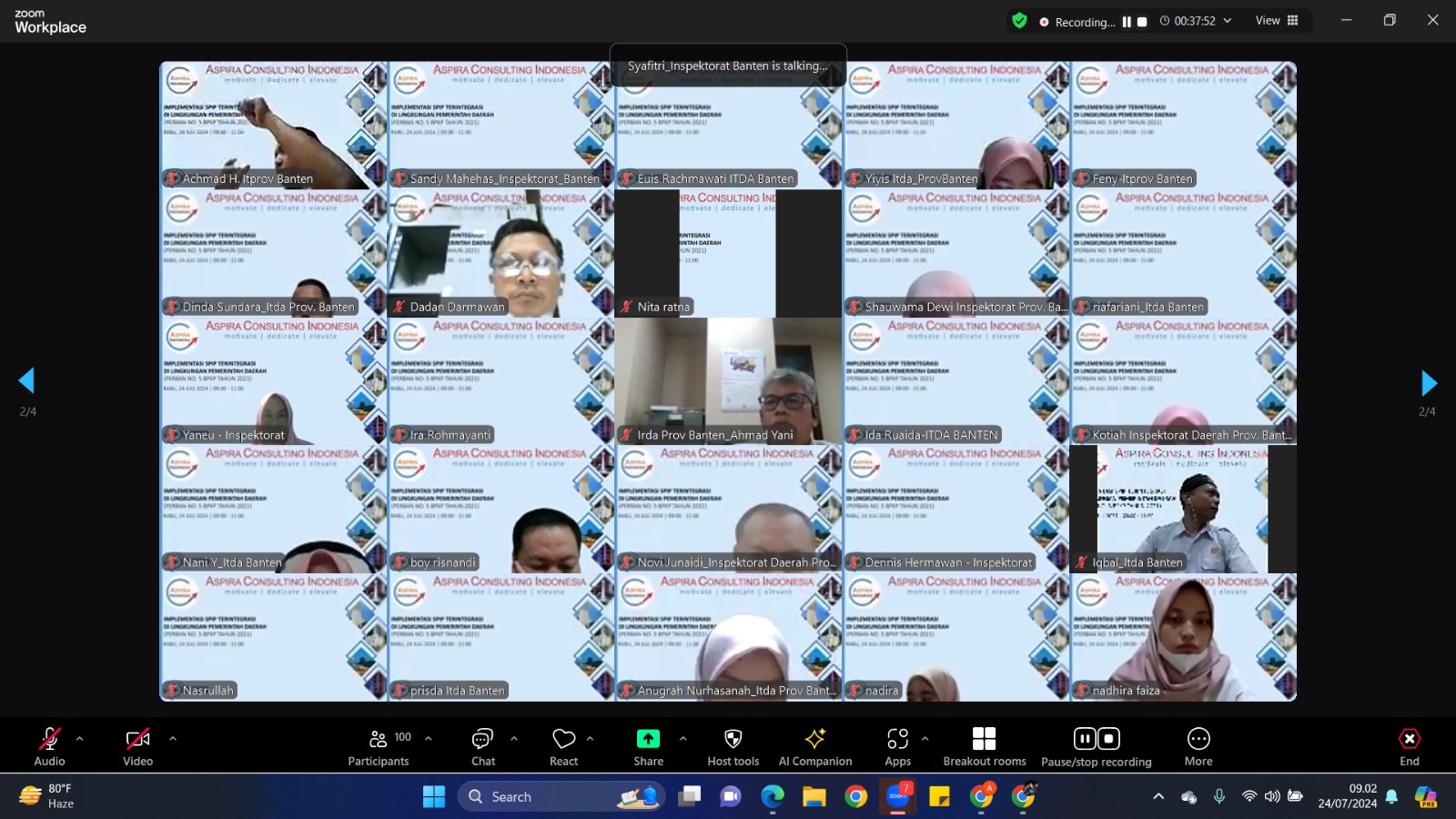 Webinar Aspira Consulting Indonesia "Implementasi SPIP Terintegrasi